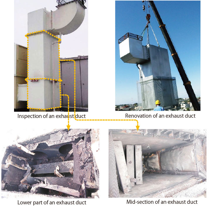 This renovation is performed due to the destruction of the exhaust duct interior.