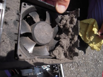 - Inhibition of cooling fan caused by deterioration and broken of air filter