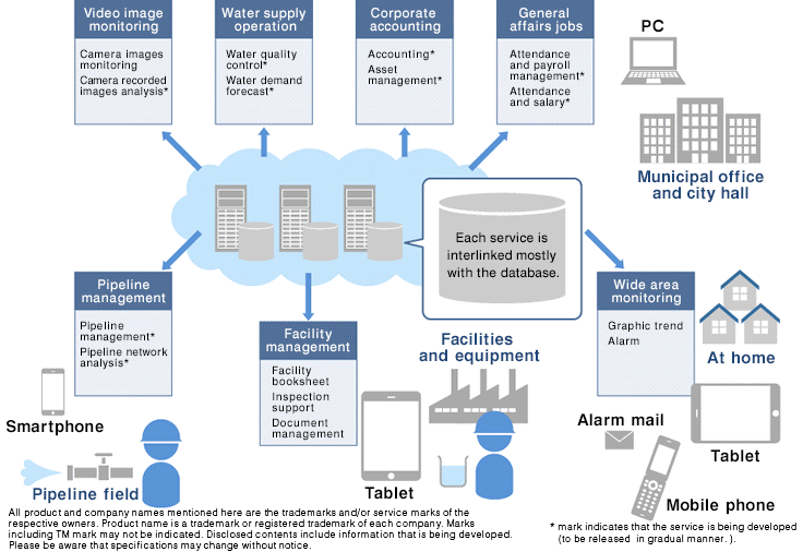 We provide the one-stop service of various services focusing on the wide area facility monitoring including live image monitoring, facility management, water pipeline management, etc.
