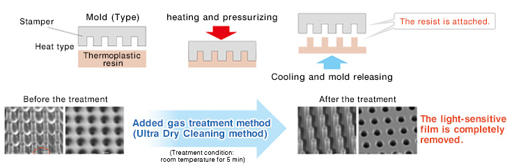 Removal of a stamper in nanoimprint (use of the added gas treatment method)