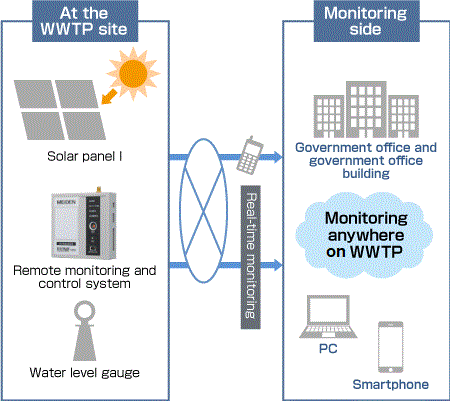 This system allows the Web monitoring and measurement by installing a package consisting of stand-alone power source - "solar power unit", measuring devices and wireless communication unit. This was developed for locations where there is no power supply and measurement monitoring is not possible such as a water reservoir in remote mountainous area.
