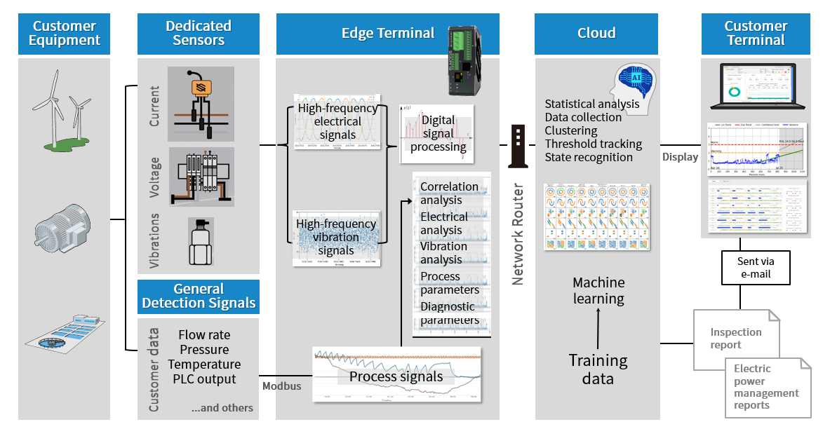 - Multidimensional correlation analysis for three-phase currents, voltage signals, vibration signals, and various other process signals